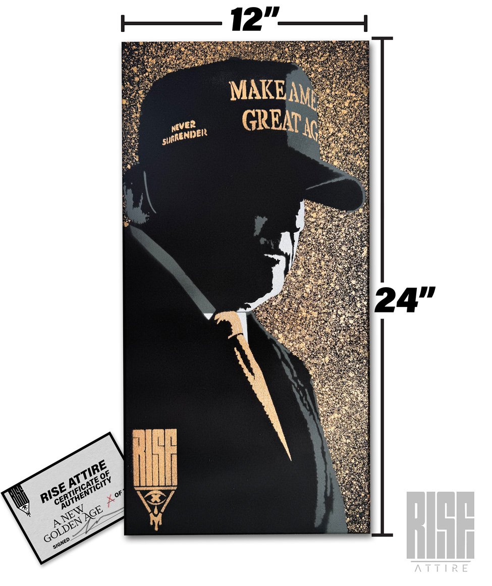 In honor of our glorious 2024 victory for President Trump, we are proud to present the 4th official hand-painted work of art by RISE Attire! Capture this iconic moment in time forever, memorialized in gold. We're offering FREE SHIPPING anywhere in the United States. International shipping is offered at a reduced flat rate per region.
