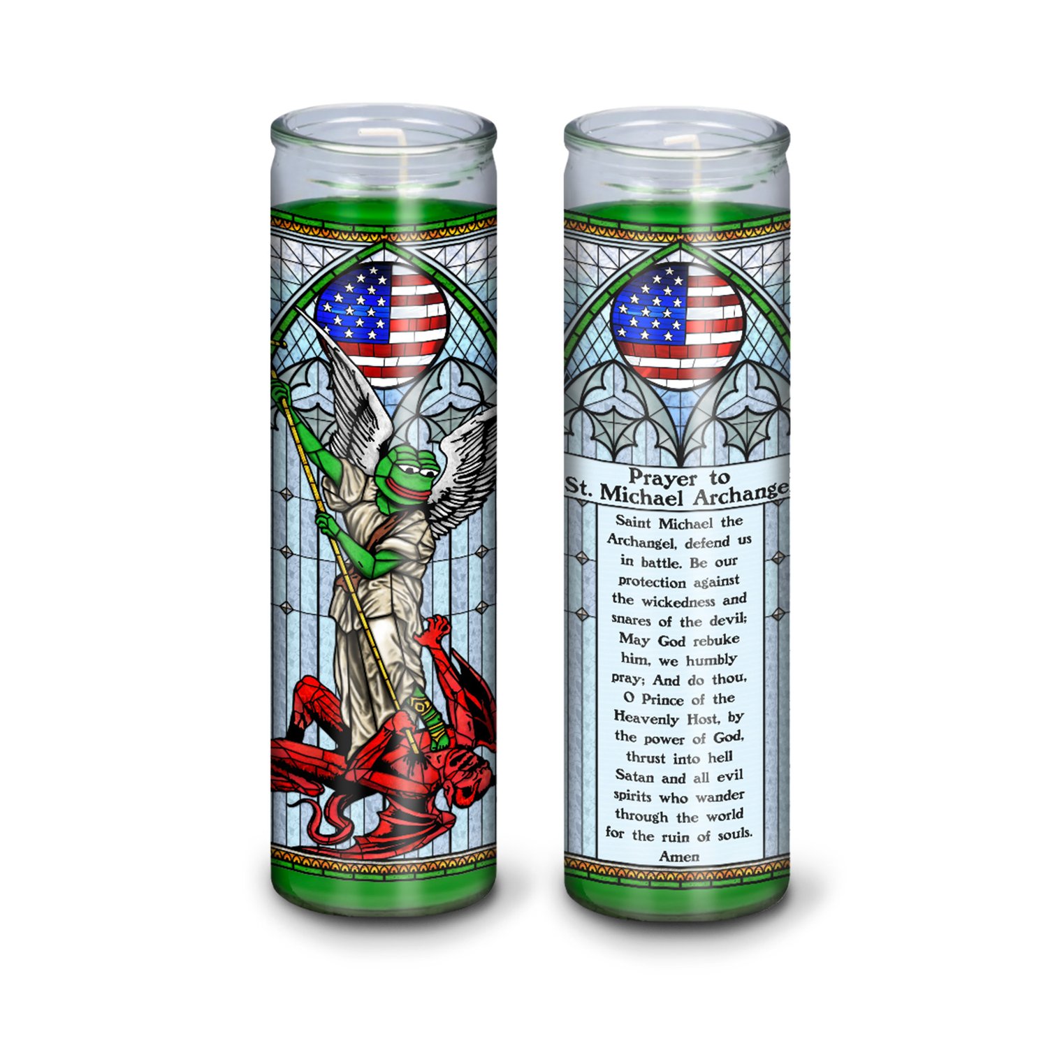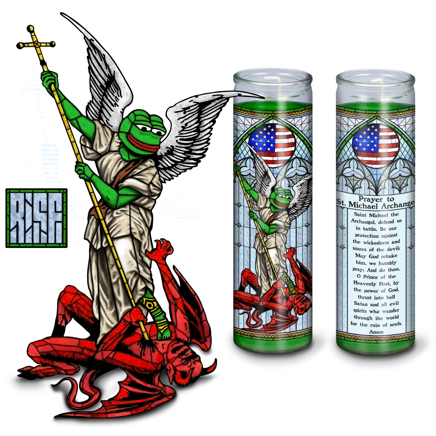 Only 24 in existence! Commemorate this incredible, perilous moment in history we're living through, and this movement we're a part of, with a beautiful prayer candle made by RISE Attire. Beautiful high resolution prints of our original artwork and the prayer to Saint Michael the Archangel adorn the front & back of these 8" green prayer candles. Each is individually numbered. Grab yourself one of these hand made collectors items while supplies last!